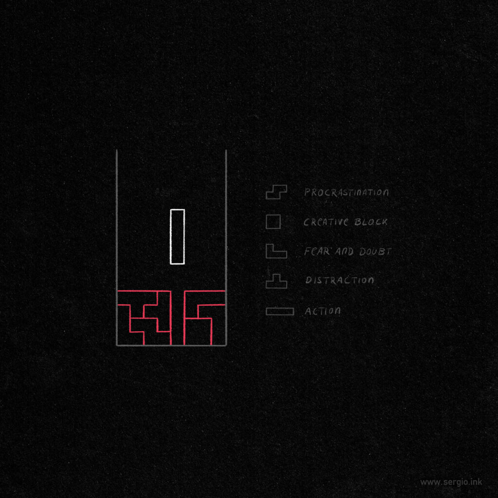 Next time you feel stuck, just do something—no matter how small. Create a folder structure on your computer. Draw the first sketch in seconds. Jot down your immediate thoughts.